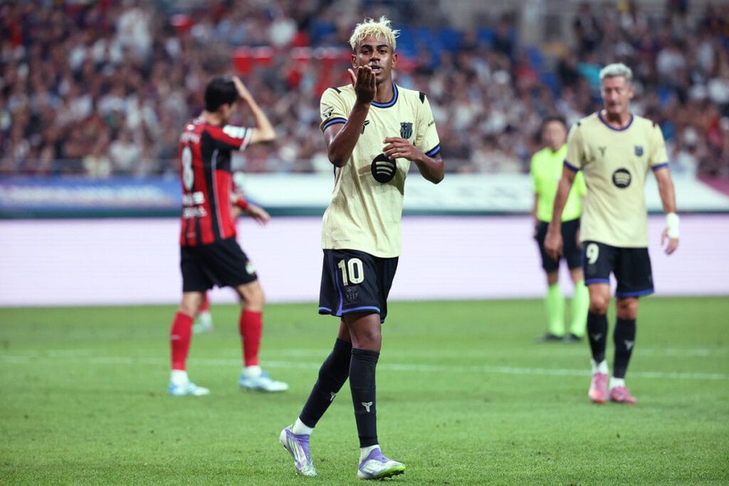 Lamine Yamal marca gol contra o Seoul FC e celebra colocando coroa na cabeça. Conheça o jovem talento que já se projeta como futuro ídolo do futebol.