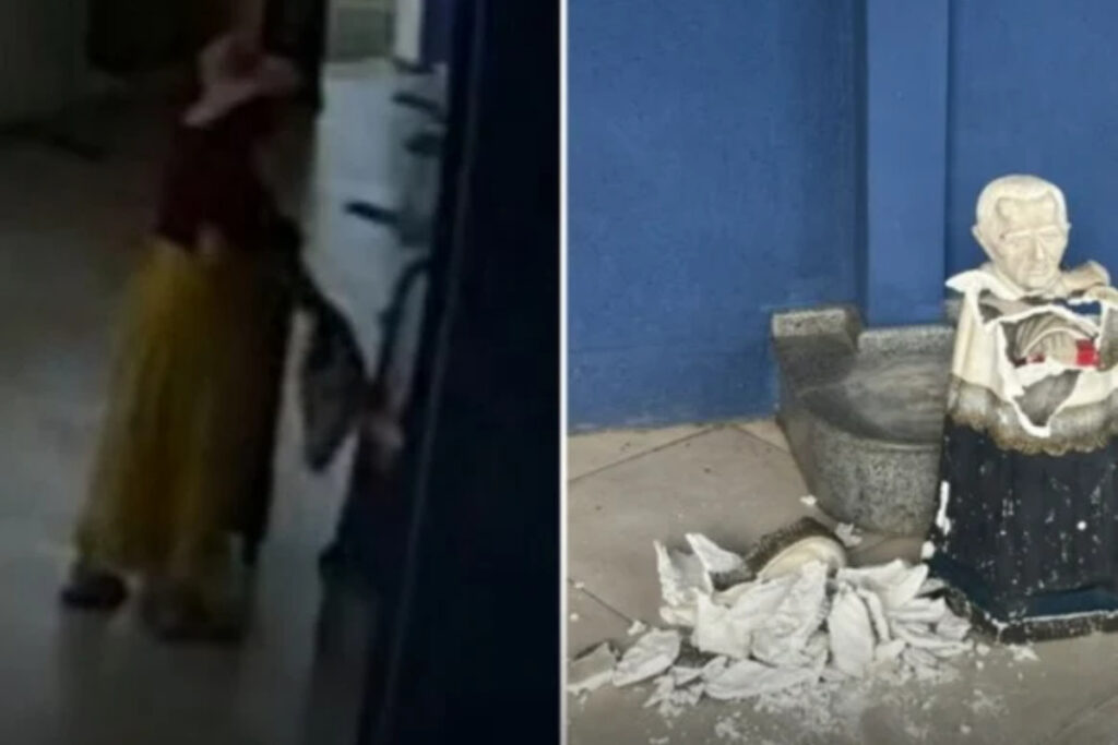 Turista argentina é presa após destruir estátua do padre Cícero no Ceará. Vídeo registrado por câmeras de segurança mostra o momento do vandalismo.