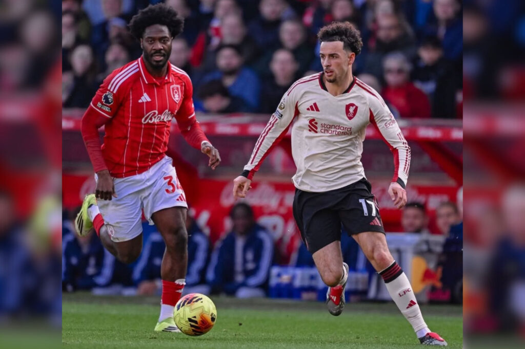Liverpool vence Nottingham Forest com gol nos acréscimos e chega aos 45 pontos na Premier League, igualando Chelsea e Manchester United.