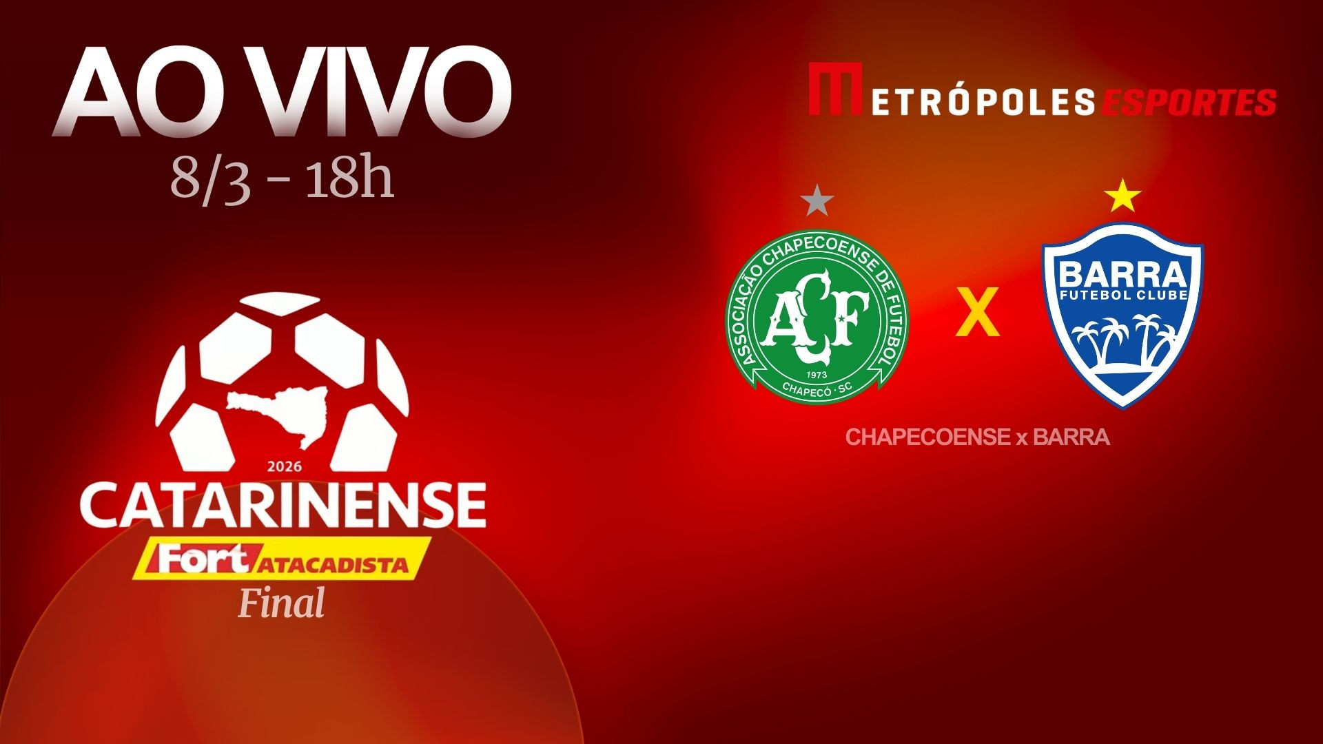 Acompanhe a final catarinense 2026 entre Chapecoense e Barra ao vivo no YouTube pelo Metrópoles Esportes. Saiba onde assistir e o que esperar do jogo.