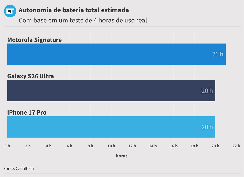 Em um cenário de uso moderado, o Signature passa um dia inteiro longe da tomada sem problemas. No meu uso pessoal, com acesso frequente ao TikTok e Instagram, ele chegava tranquilamente a um dia de uso, com certa folga: algumas vezes ainda sobrava algo entre 15% e 30% para o dia seguinte.